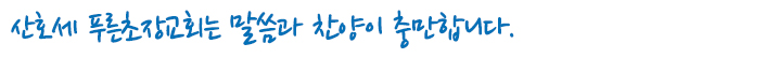 칼빈주의에 입각한 정통 보수 신학을 바탕으로 오직 성경, 오직 예수, 오직 믿음만이 구원에 이르게 한다는 신앙고백으로 예배를 드리고 있습니다. 주일 예배와 수요 예배를 통해 말씀, 기도, 찬양이 충만한 건강한 영적 성장을 이루어 나가고 있습니다.
